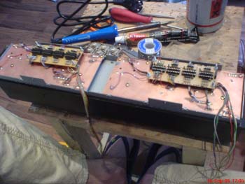 Cutting the new PCB using a small cutter for my dremel tool. Two boars are done, one for the left and the right side of the unit.