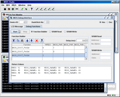 MIOS Debug Functions: The MIOS debug window allows to execute MIOS functions via remote: