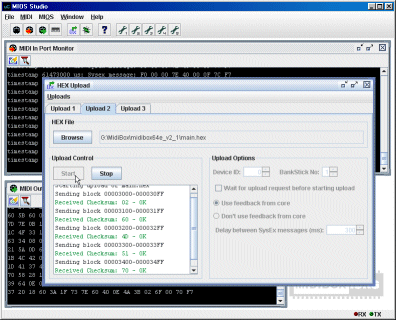 Hex Upload: The MIOS code upload is very comfortable - you don't need to generate a .syx anymore, HEX files can be uploaded directly: