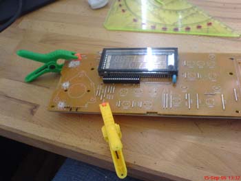 Cutting the new PCB using a small cutter for my dremel tool. Two boars are done, one for the left and the right side of the unit.