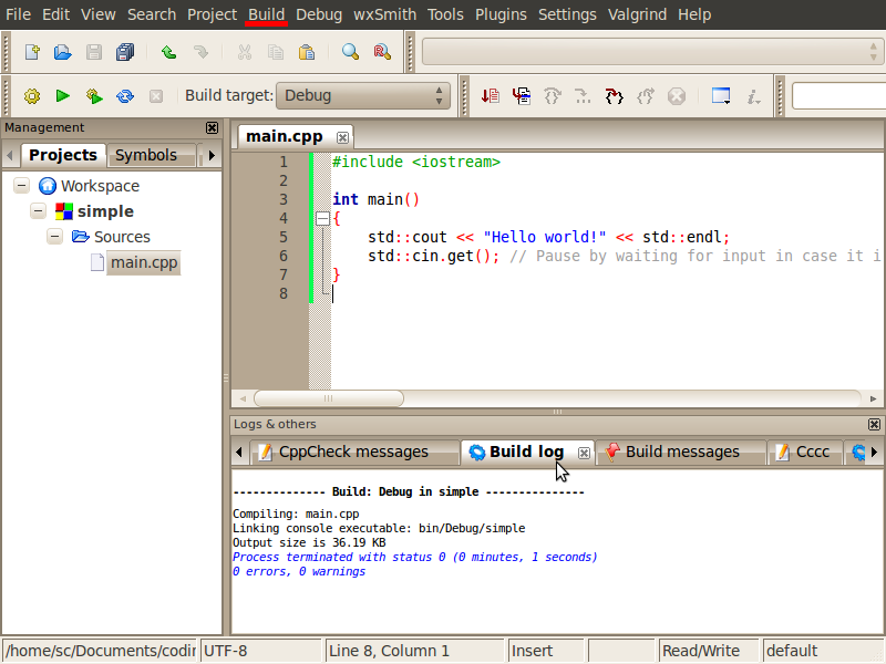 CodeBlocks is a Cross-Platform Open Source Integrated Development Environment (IDE) to program with C/C++