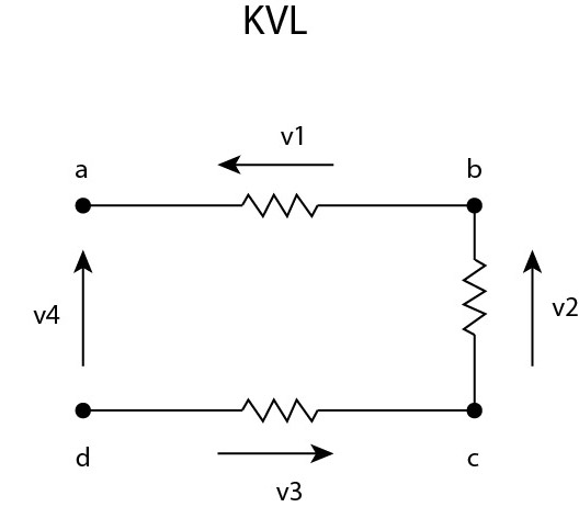 In other words, the voltage is balanced along the components rings ; ad = ab + bc + cd