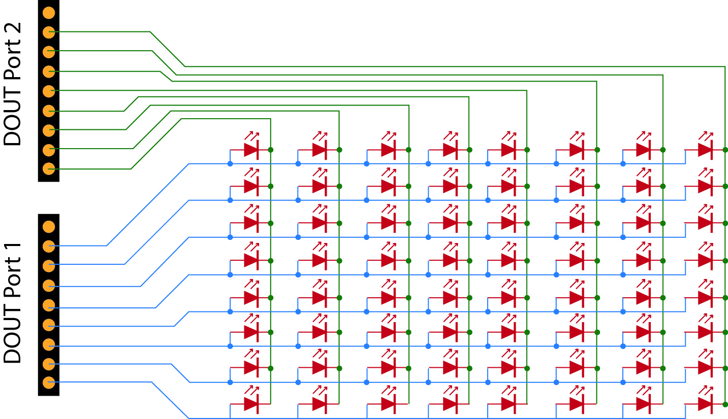 RGB (Red Green Blue) or multicolor LEDs can be serial driven by a core32. Some tests have already been made with WS2812 ( APA106 ) LEDs and a core STM32 through J4B Pin.