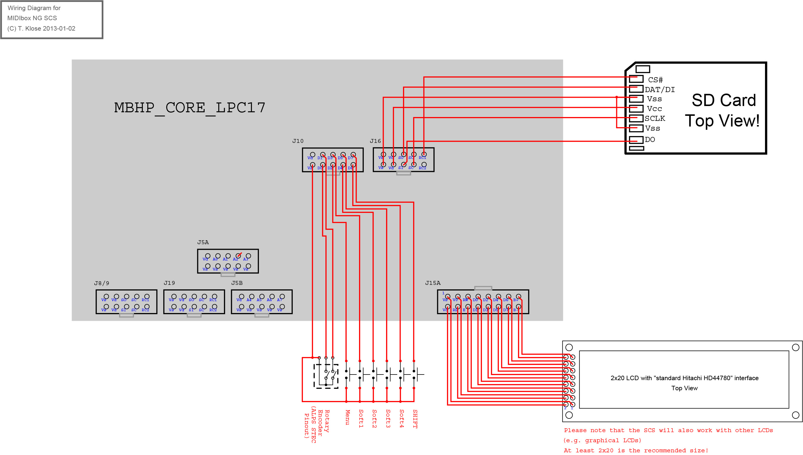 A detented rotary encoder and 6 buttons are directly connected to J10 of the Core module to control the menu system.In addition a LCD is required. The recommended size is at least 2×20! Graphical LCDs (GLCDs) are supported as well.