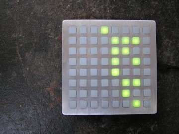 Editing of that pattern by pressing buttons - LED indicates note (on) or no note (off), position indicates time within bar. LEDs flash sequentially left to right to indicate current position/time.