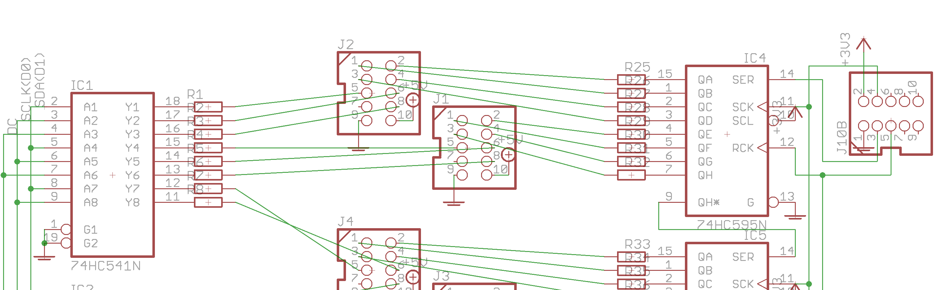 J15A1/J10B1 chain another Display Driver. Note that the J15 connection should not be mirrored for subsequent boards.