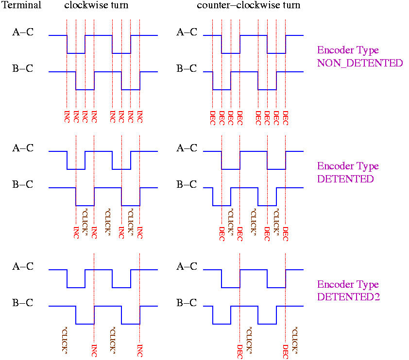 Detented encoders mechanically limit their resolution, because one “click” of an encoder may actually run through four events.