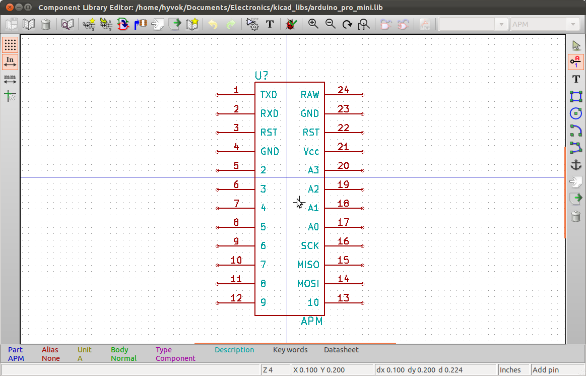 - First you have to create a library including all the components you will need for your design.This allow to add new components to a basic library by designing pin layout for a new used IC.