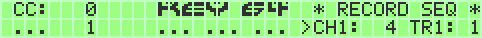 The Record Mode is available by pushing SHIFT_R + RETURN in mainscreen. Note!! Only SEQ versions higher than SEQ V3.2a will work correct. All you have to do: Set up the same midichannel for SEQV3 midi-in and K64 (lower) keyfield.