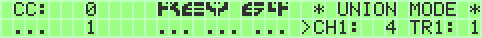 The Union Mode binds the lower and upper Keyfield. All notes will be sended out to the single Midi Channel.