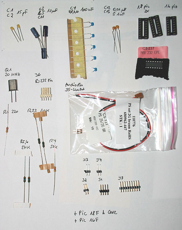 - Burning the speakjet_iic firmware to the PIC16F Microchip (requires a MBHP-Burner module together with a 18-to-40 pin adapter made out of two IC-Sockets)