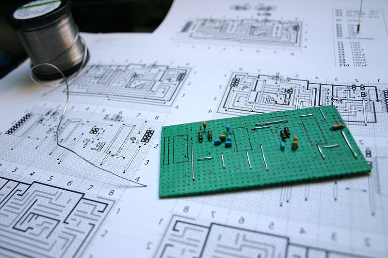 Download the PDF plan from below to get started, it contains also a list of needed parts. If you have FreeHand, you should definitely also download the source, because you can switch the visibility of layers. However, the PDF contains multiple views of the Breadboard Construction, so it should be easy to rebuild.