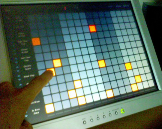 This software drum pattern editor for touch monitors turned up in the comments to this article on Music Thing. The author appears to be offering it free to anyone who wants to try it out.