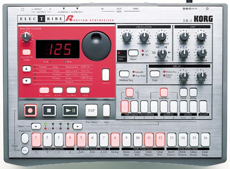 - The Electribe ER-1. Notice the LEDs just above the 16 step buttons. 4 LEDs tell you which 16 steps are currently playing, and the other 4 tell you which 16 steps you are currently editing.