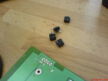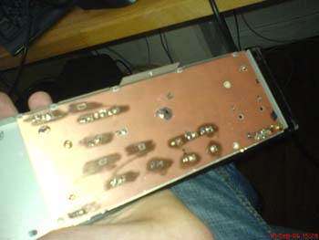Cutting the new PCB using a small cutter for my dremel tool. Two boars are done, one for the left and the right side of the unit.
