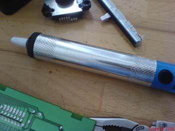 After that I desoldered the PCB to have a template for making new ones. This was done with the help of a desoldering pump. The pushbuttons, the leds and the jog/shuttle wheel have been desoldered.